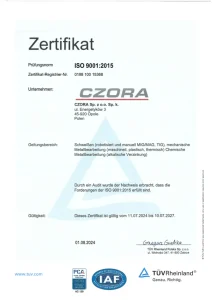 Wir besitzen auch ein Zertifikat für das Schweißen von Schienenfahrzeugen und Fahrzeugteilen gemäß der Norm: