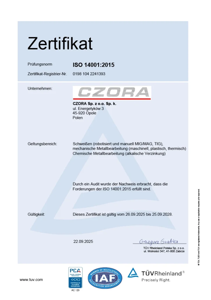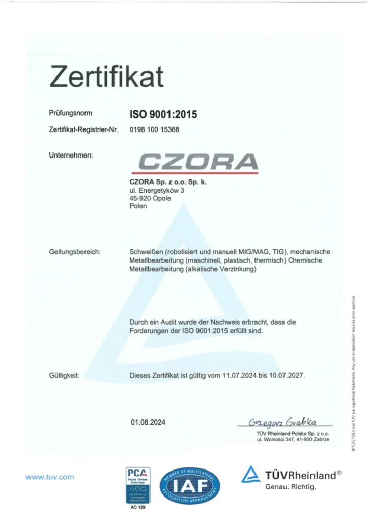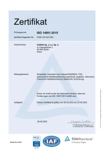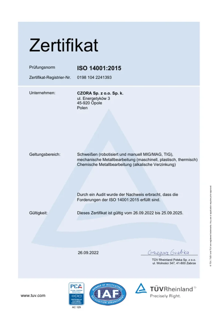 Um die Qualität der Produkte, die Kundenzufriedenheit und den Umweltschutz zu gewährleisten, haben wir Zertifizierungssysteme implementiert und erhalten: